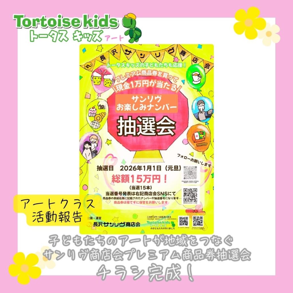 子どもたちのアートが地域をつなぐ ― サンリヴ商店会プレミアム商品券抽選会チラシ完成!