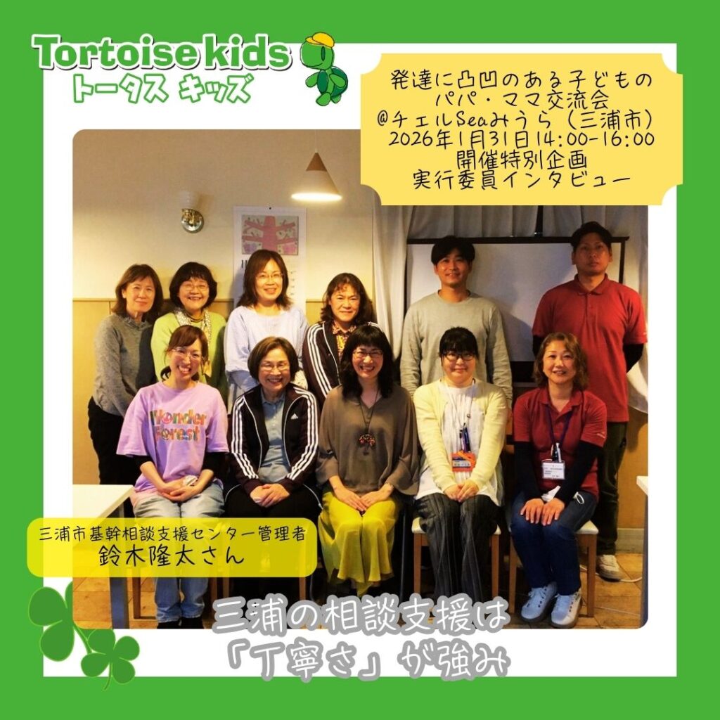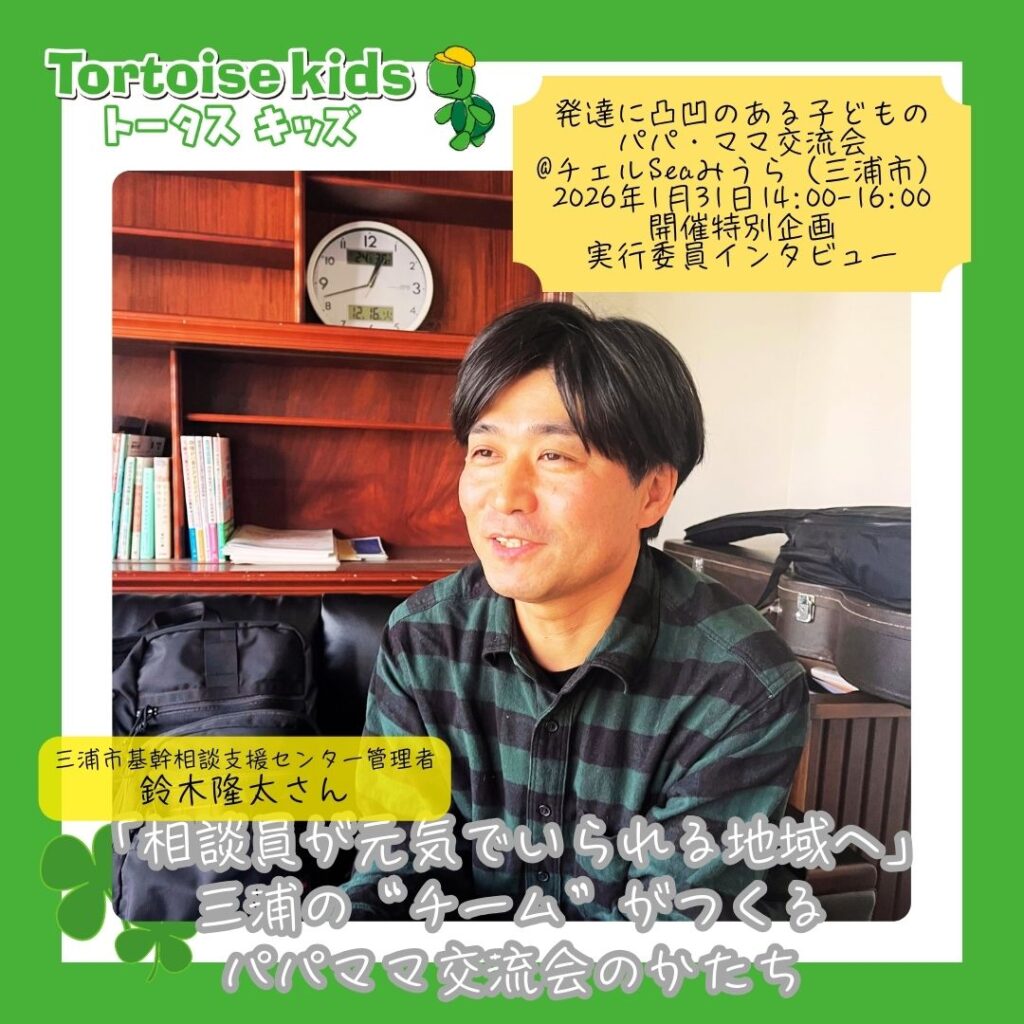 高橋(トータスキッズ代表):鈴木代表、今日はありがとうございます。1月31日の「発達に凸凹のあるお子さまのパパママ交流会」に向けて、実行委員の想いを“保護者の方に届く言葉”にしたくて。まず、三浦市基幹相談支援センターとして大事にしていることを教えてください。